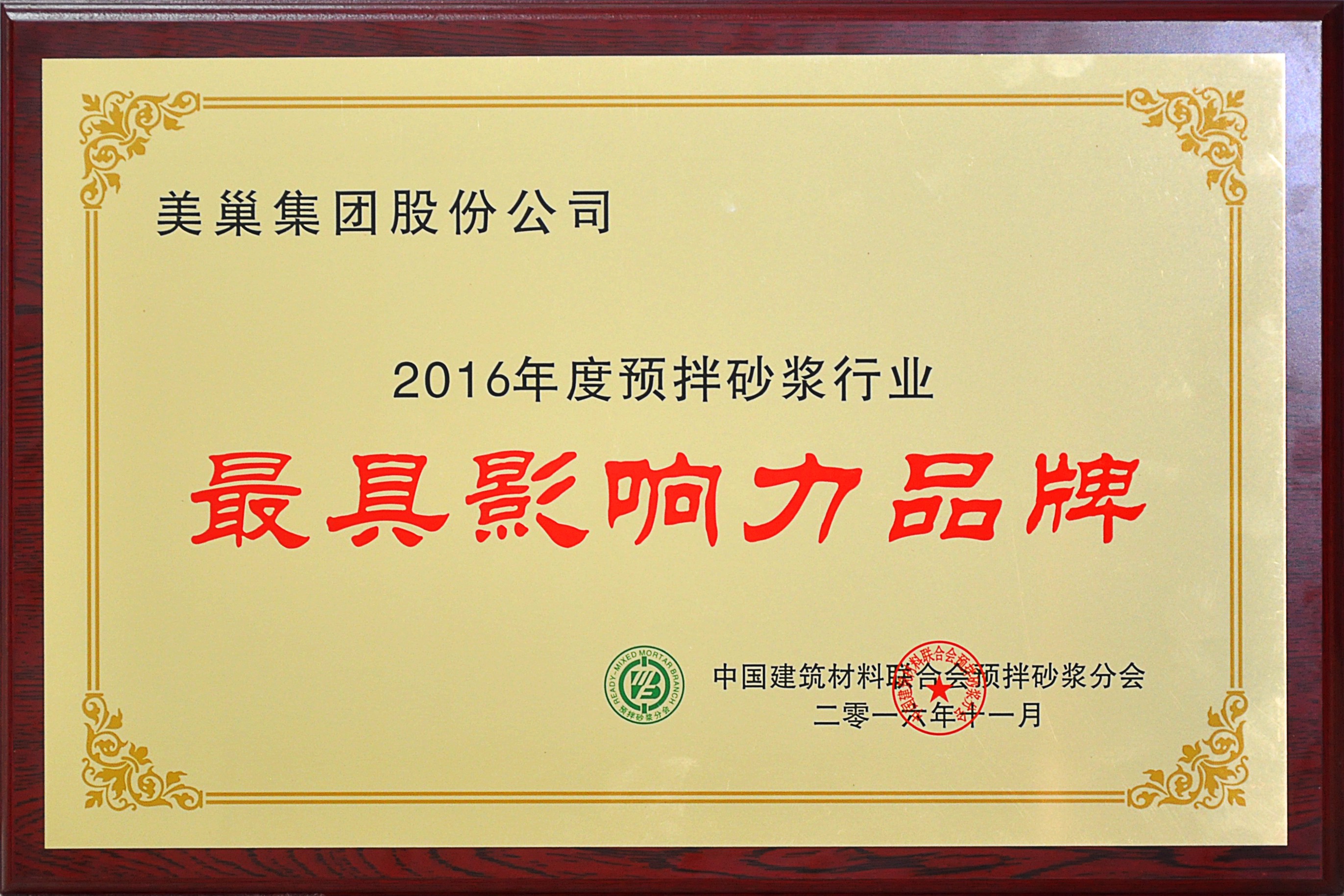2016年度預(yù)拌砂漿行業(yè)最具影響力品牌
