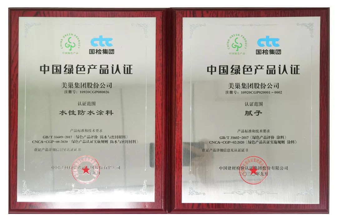 美巢集團(tuán)獲得中國綠色產(chǎn)品認(rèn)證證書