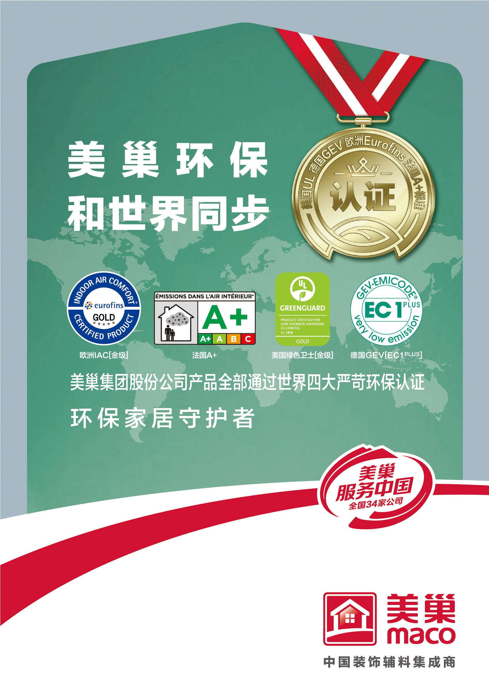 美巢環(huán)保和世界同步 四大嚴苛環(huán)保認證背書