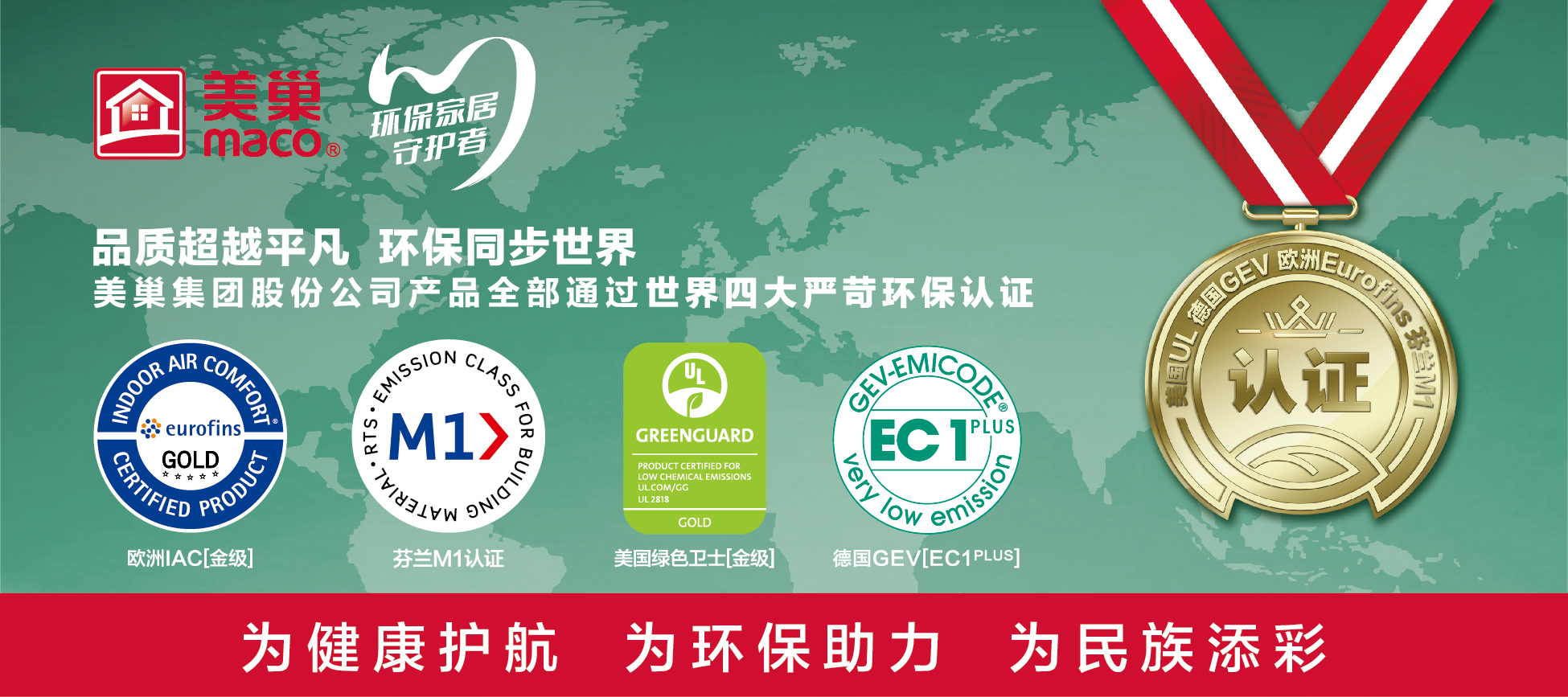 構(gòu)建數(shù)字化、智能化的工廠不僅是企業(yè)實力的見證和精益生產(chǎn)的體現(xiàn),更是對美巢產(chǎn)品力的加持。作為環(huán)保家居守護者,美巢始終堅持“品質(zhì)超越平凡、環(huán)保同步世界”的品牌核心價值, 旗下產(chǎn)品全部通過了世界四大嚴苛環(huán)保認證:美國UL綠色衛(wèi)士【金級】、歐洲Eurofins IAC【金級】、德國GEV【EC1PLUS】以及芬蘭【M1】認證。