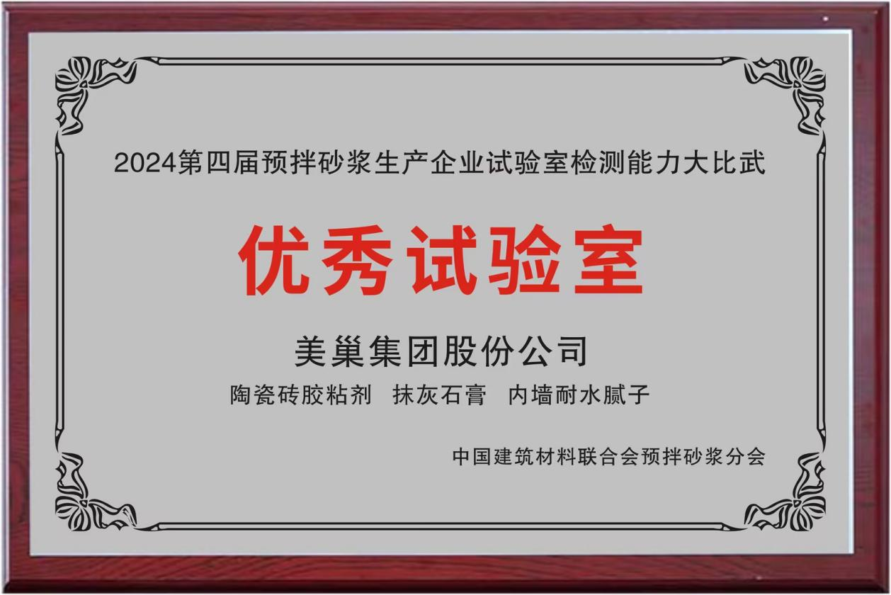 會(huì)上,“2024第四屆預(yù)拌砂漿生產(chǎn)企業(yè)試驗(yàn)室檢測(cè)能力大比武”榮譽(yù)揭曉,美巢集團(tuán)股份公司榮獲“優(yōu)秀試驗(yàn)室”稱號(hào)。