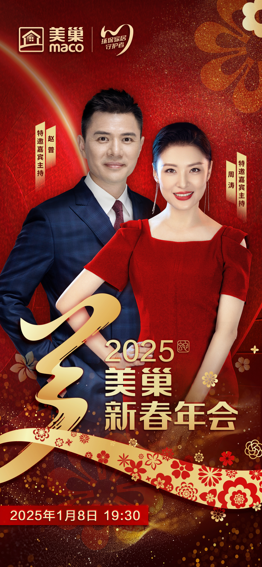 龍年已展千重錦,蛇歲再登百步樓,美巢希望通過一期一會的新春年會讓美巢的合作伙伴們、美巢的同事們及家人們共享美好,感受團聚的喜悅、企業(yè)的承諾與品牌的力量。1月8日19:30,讓我們共同期待美巢攜手周濤、趙普為您奉上的“2025年美巢新春年會”。