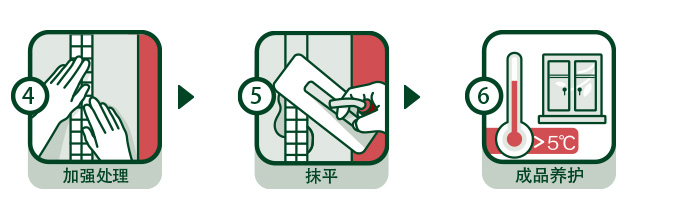 | 施工事項(xiàng): | 修補(bǔ)寬度控制在2mm以上,抹灰厚度控制在2mm~3mm之間。攪拌后的膠漿要一次性用完,避免硬化浪費(fèi)。 |