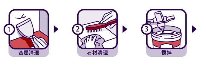 | 施工事項(xiàng): | 石材背面應(yīng)無明水,無浮灰、油污、脫模劑、背網(wǎng)等影響粘結(jié)的雜質(zhì)或隔層。禁止無縫鋪貼,縫隙不小于2mm。建議使用齒形刮刀在基層與瓷磚背面同時(shí)薄刮瓷磚膠粘劑進(jìn)行雙面涂膠,在不利環(huán)境(如高溫、有風(fēng)等)或基層吸水率較高條件下,應(yīng)盡快粘貼瓷磚。攪拌好的膠漿須在2小時(shí)內(nèi)用完。 |