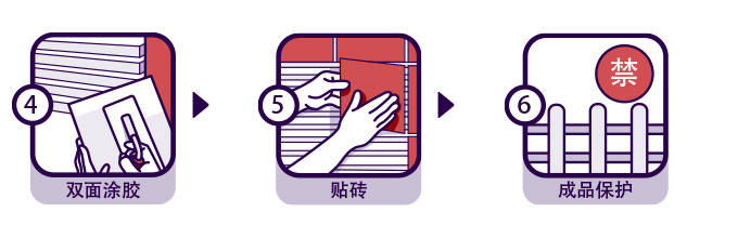 | 成品保護(hù): | 鋪貼完成后,養(yǎng)護(hù)期間不得受力。對(duì)施工中可能發(fā)生碰撞受損的入口、通道、陽角等部位,應(yīng)采取臨時(shí)保護(hù)措施。 |