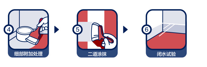 | 施工方法: | 施工質(zhì)量配比為A液料︰B粉料=2.05︰2.45,將液料倒入桶中,再緩慢加入粉料,攪拌成均勻無結(jié)塊的漿料,靜置2~3分鐘,再攪拌1~2分鐘。用工具涂刷2~3遍,涂層厚度應均勻,不得有漏刷或堆積現(xiàn)象,前后兩遍的涂刷方向應相互垂直,應在前一遍實干后再涂刷下一遍。單層涂刷厚度不超過1mm,涂膜過厚,會導致干燥時間長,涂膜防水可靠性下降。細部節(jié)點應采用網(wǎng)格布加強涂刷。攪拌的防水漿料須在1小時內(nèi)用完。待涂膜完全干燥48h后方可進行閉水試驗。 |