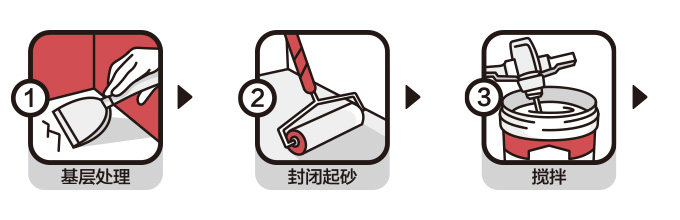 | 基層處理: | 地面須堅(jiān)實(shí)、無明水、無浮灰與污物,地面疏松或起砂需用地錮地面界面劑或墻錮混凝土界面劑進(jìn)行封閉處理,界面劑表干后即可施工。 |
