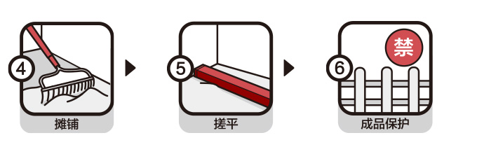 | 施工事項(xiàng): | 將攪拌好的砂漿攤鋪在地面,用大杠刮平壓實(shí),正常養(yǎng)護(hù)24小時(shí)后即可上人及后續(xù)施工。如果邊找平邊鋪磚,每次攪拌量應(yīng)根據(jù)鋪貼地磚的速度確定,粘貼地磚需用占瓷寶ZCB200玻化地磚膠粘劑。 |