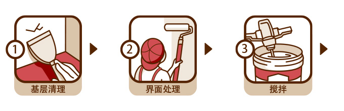 | 基層處理: | 基層須堅(jiān)實(shí)、無(wú)明水、無(wú)浮灰與污物。上道工序留下的溝槽、孔洞等應(yīng)進(jìn)行填實(shí)修整。基層表面疏松或平滑,需用墻錮混凝土界面劑進(jìn)行界面處理或造水泥拉毛。 |